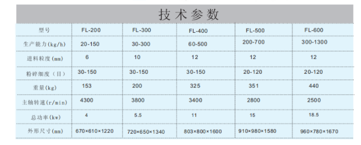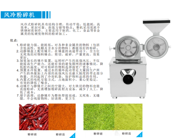 FL-200風(fēng)冷粉碎機結(jié)構(gòu)合理,傳動平穩(wěn),低能耗,高效率,拆裝方便。