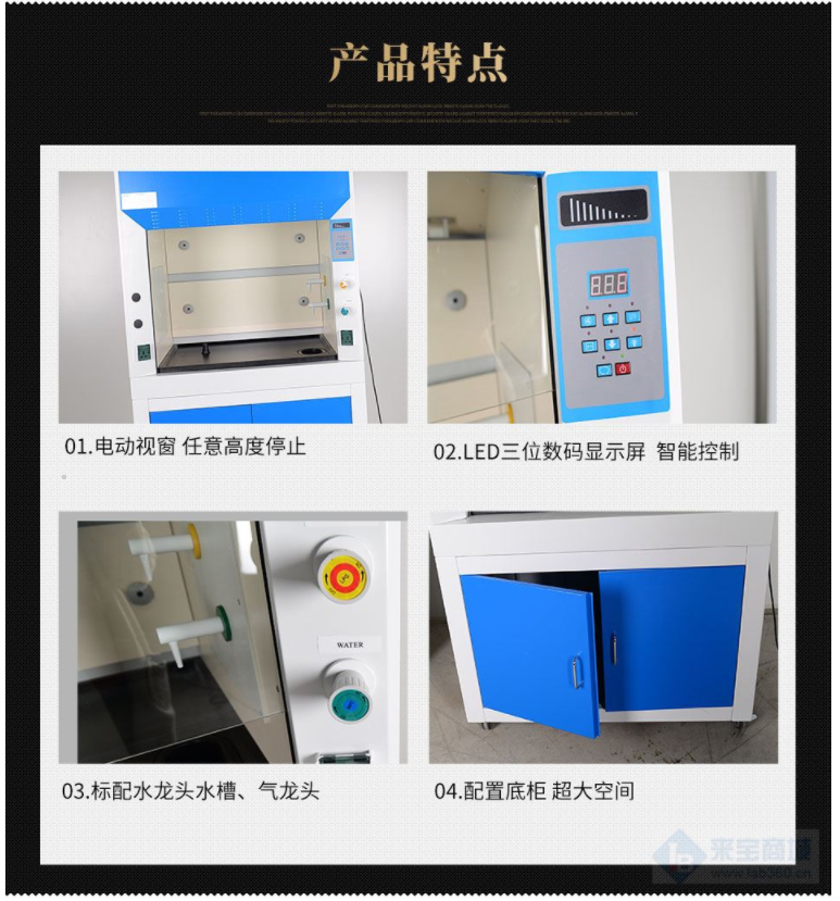 10、通風柜內置交流后向離心風機,風量大、噪音小,方便客戶安裝。